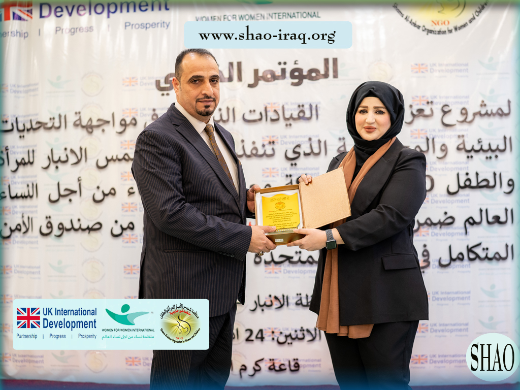 بحضور شخصيات رسمية وممثلين عن المجتمع المدني ونخبة من القيادات النسائية، اختتمت منظمة شمس الأنبار للمرأة والطفل وبالشراكة مع منظمة نساء من أجل النساء العالمية، فعاليات المؤتمر الختامي لمشروع “تعزيز القيادات النسائية في مواجهة التحديات البيئية والمجتمعية”، والذي يأتي ضمن مشروع “نساء والسلام” بدعم من صندوق الأمن المتكامل في المملكة المت