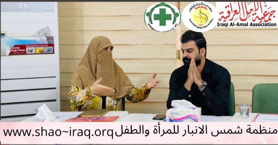 نفذت ” منظمة شمس الانبار للمرأة والطفل ” جلسة حوارية بعنوان ( حقوق الأطفال من ذوي الاعاقة في يوم الاثنين الموافق 2024/9/30في قاعة منظمة شمس الانبار للمرأة والطفل بحضور مديرة معهد الصم والبكم في محافظة الانبار ومشاركة ناشطين وناشطات و شخصيات حكومية من محافظة الانبار