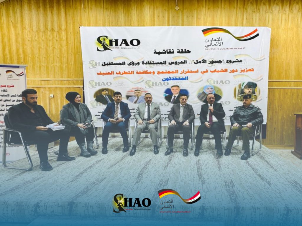 نظّمت منظمة شمس الإنسانية للمرأة والطفل، ضمن مشروع جسور الأمل، وبالتعاون مع اللجنة الفرعية لمكافحة التطرف العنيف في محافظة صلاح الدين، وبدعمٍ من التعاون الألماني، وبتأريخ 13/1/2026، جلسةً نقاشية حول الدروس المستفادة ورؤى المستقبل حملت عنوان