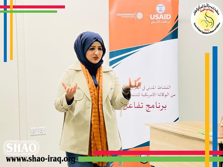 القت رئيسة منظمة شمس الانبار الدكتورة سهاد العكيدي محاظرة حول قانون 1325 المهتم بشان المرأة والسلام والأمن والخطة الوطنية الاولى والثانية لدعم المرأة التي اقامها برنامج تفاعل من قبل رابطةالتضامن العراقية للشباب بالتعاون مع منظمة شمس الانبار وبتمويل من الوكالة الامريكية للتنمية الدولية في محافظة الانبار مدينة الرمادي الهدف مناهضة العنف ضد المرأة والتركيز على قضايا المرأة الرئيسية التي تمت مناقشتها خلال الاجتماعات النسوية السابقةالنتائج المتوقعة والمخرجات زيادة التنسيق والتعاون بين مختلف الاطراف المعنية في المجتمع وزيادة وعي النساء بحقوقهن الموافق 2024/12/10