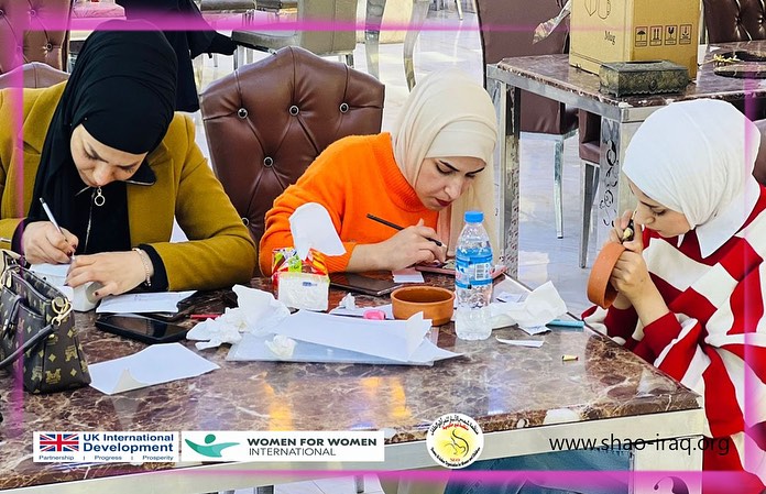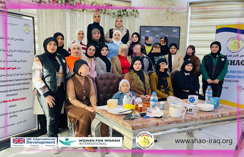 نظمت شمس الانبار ورشة عمل تدريبية استمرت لمدة يومين حول الرسم على الفخار والأطباق والصحون، وذلك ضمن إطار مشروع تعزيز القيادات النسوية في مواجهة التحديات الاجتماعية والبيئية، وبالشراكة مع منظمة نساء من أجل النساء الدولية ضمن مشروع النساء والسلام