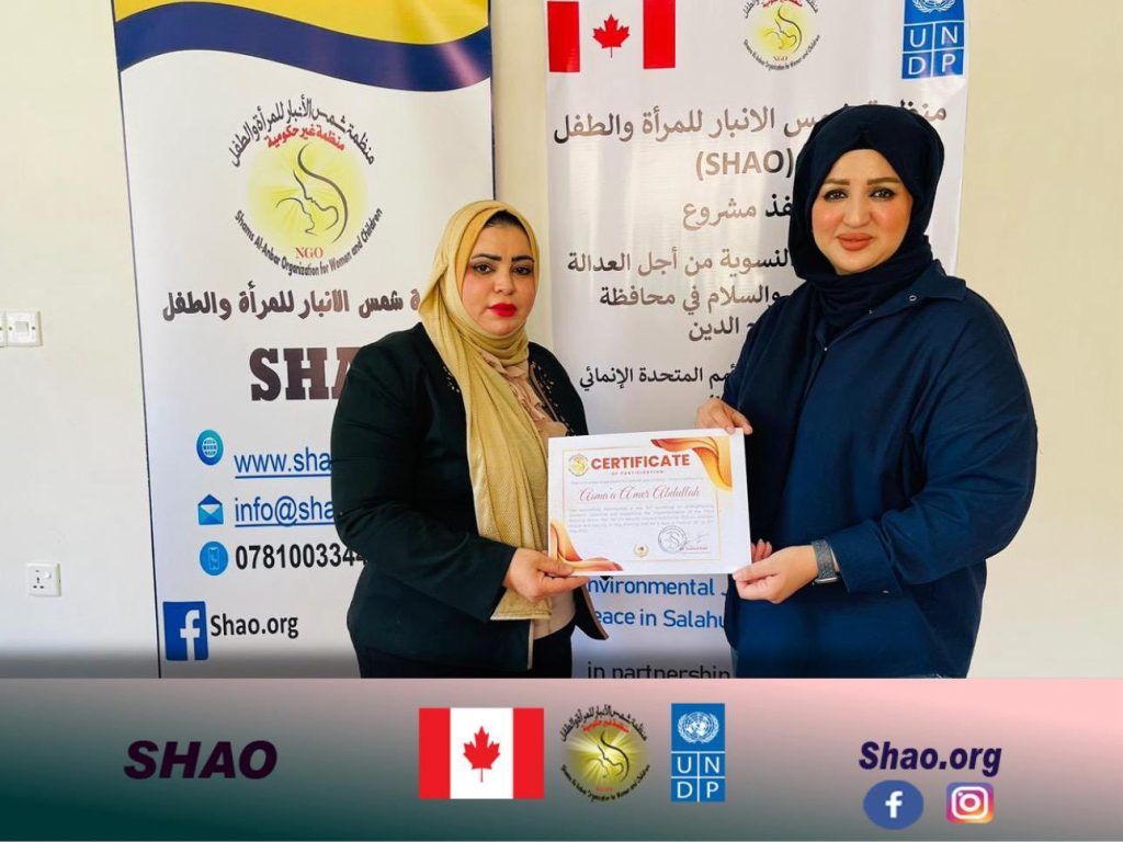 ضمن إطار مشروع تعزيز القيادة النسوية من أجل العدالة البيئية والأمن والسلام في محافظة صلاح الدين، نفذت منظمة SHAO ورشة تدريبية (TOT) استمرت لمدة ثلاثة أيام حول: