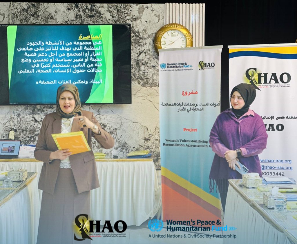 نفذت منظمة شمس الإنسانية للمرأة والطفل بتاريخ 14/12/2025 في مدينة الفلوجة ورشة تدريبية بعنوان “بناء قدرات النساء في الرصد والمناصرة”، ضمن مشروع “أصوات النساء ترصد اتفاقيات المصالحة المحلية في محافظة الأنبار” . الورشة جمعت مجموعة من النساء المتميزات اللواتي عبرن عن حماسهن للتعلم والمشاركة، وناقشن سويًا أفضل السبل لمراقبة الاتفاقيات المحلية والمساهمة الفاعلة في مجتمعهن .