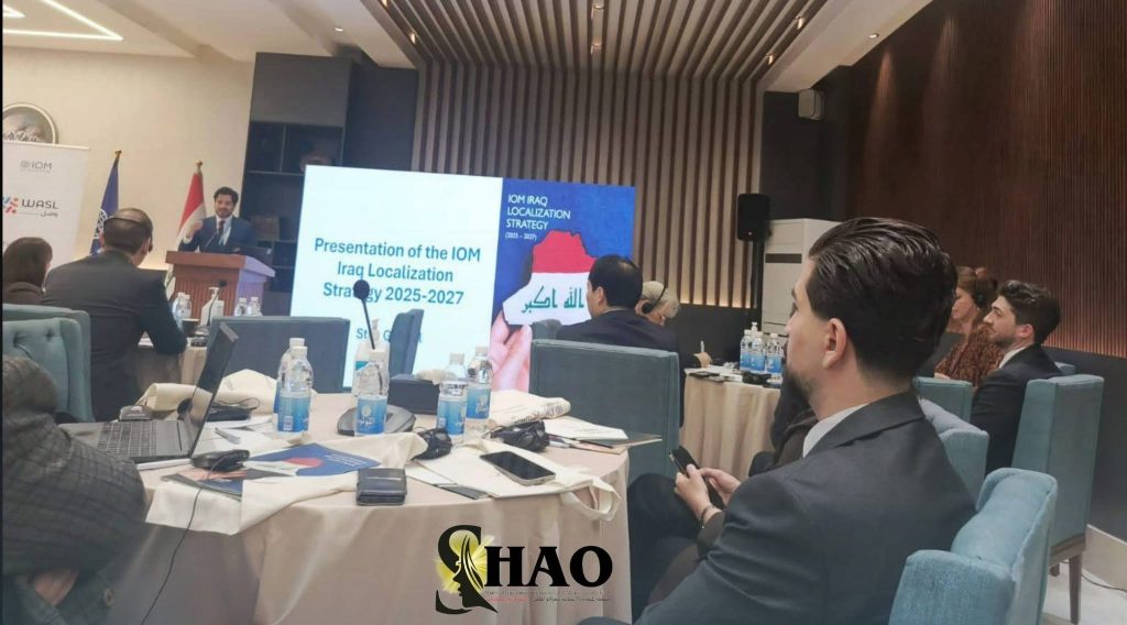 At the invitation of the International Organization for Migration (IOM), Shams Al-Insaniya Organization for Women and Children participated in the conference launching the Local Leadership Enhancement Strategy for the IOM Mission in Iraq for the years 2025–2027.