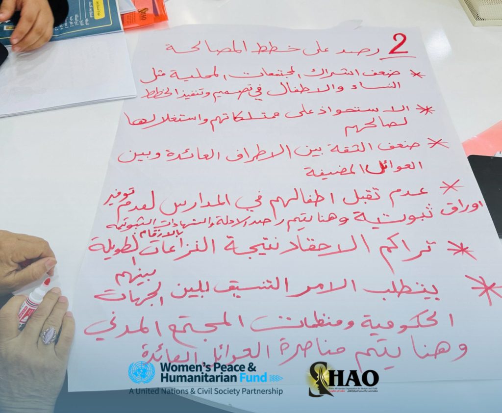 On 21/12/2025, Shams Al- Organization for Women and Children conducted a training workshop in Heet titled “Building Women’s Monitoring and Advocacy Skills ”, as part of the project “Women’s Voices Monitoring Local Reconciliation Agreements in Anbar Governorate. The workshop brought together a group of outstanding women who expressed their enthusiasm for learning and participating, and together they discussed the best ways to monitor local agreements and contribute effectively to their community.